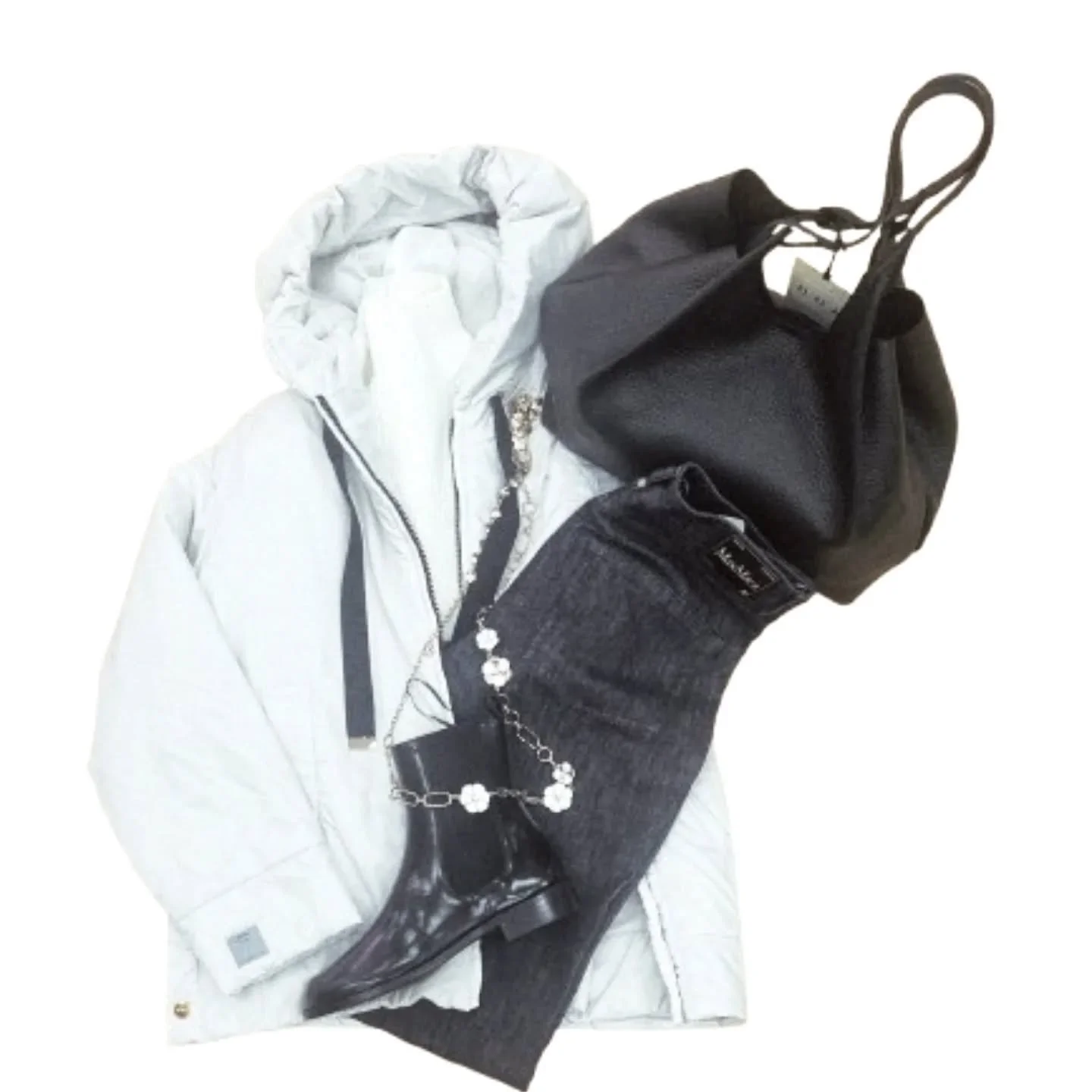 A Canali dress shirt paired with a Paul & Shark merino knit – effortlessly transitioning the look from day to night. It’s a masterclass in subtle sophistication. A Max Mara Camel Coat with a Gran Sasso Super Tasmania fine crew Knit and Gant Woman Jeans and a Gianni Chiarini DUA Tote… Easy.