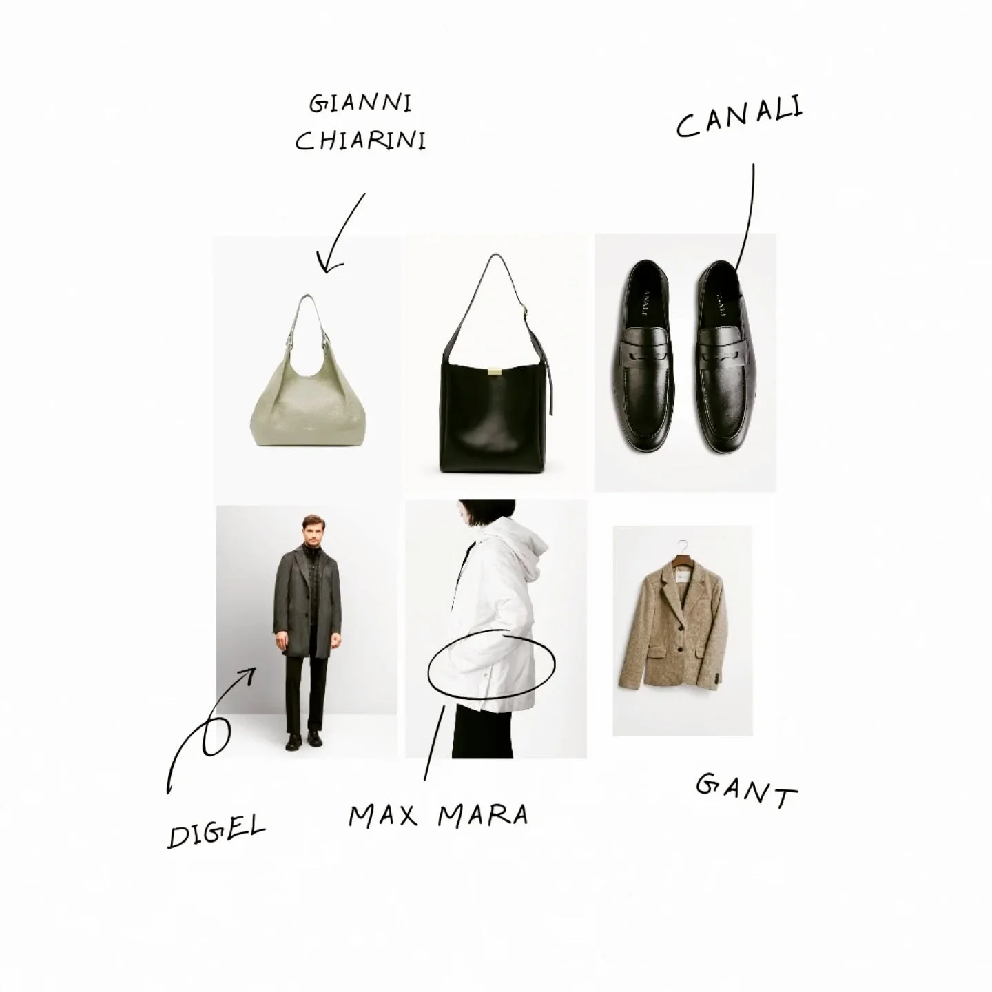 Knitwear, wool Suits, Blazers, and Leather Handbags all sourced from esteemed European labels such as Canali, Max Mara, and Paul & Shark.