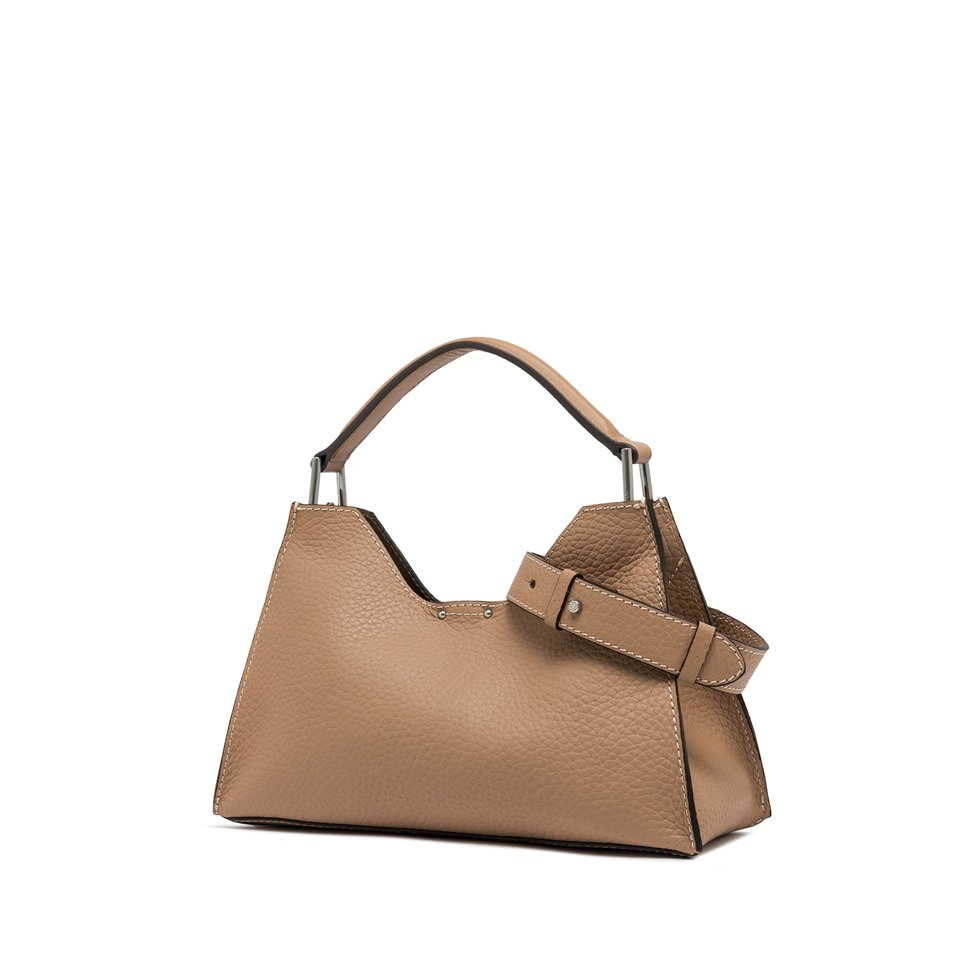 The iconic Dua bag, crafted from maxi grain leather, stands out for its unique texture. It features an unlined single compartment, top profiles in leather and color matching double handles. Practical and essential, it is perfect to stylishly enhance any look.